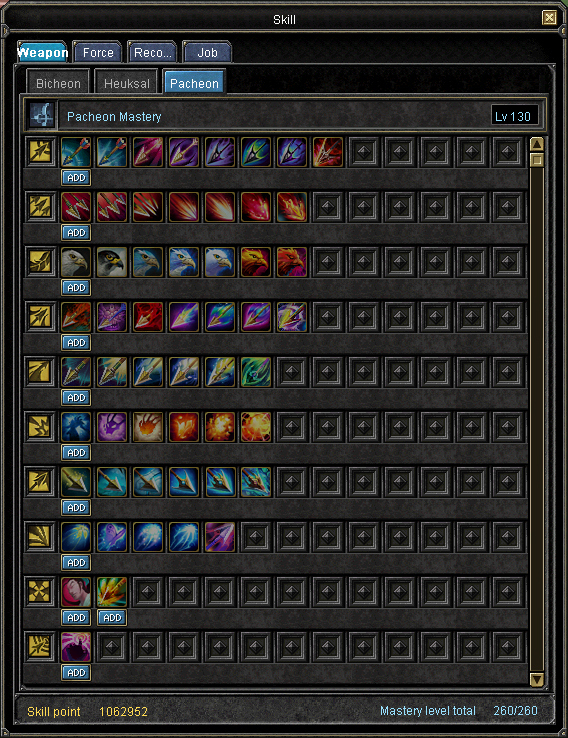 افضل حل Bow خليه هايبرد عشان يساعد معاك اكتر وليكن اساسى Fire و افتح لحد ليفل 60 Cold وكمل الباقى فـــ Lighting بس ملحوظه خلى السلاح بتعك اساسى Max خلى بالك من الحته دى __________________________________________________ _____________ اما لو انت عايز تفتح العادى بتاع الناس خليك اساسى فى Weapon Bow ومعاه Fire ومعاه Force عشان الريس يا بطل دى صور :- Bow Weapon http://1.bp.blogspot.com/-3UMGEPEKvQ...00/pacheon.jpg Skil Fire http://2.bp.blogspot.com/-2yxnjuZG8_...s1600/fire.jpg skil Force http://4.bp.blogspot.com/-O1bs2SE9Nw...1600/force.jpg ليك حريه الاختيار |