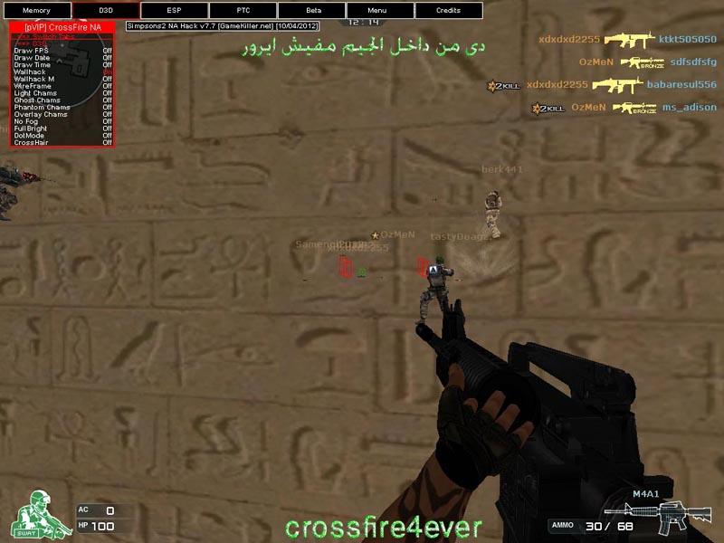 الهاك شغال تمام بس هو فى ميزة فى الهاك هى اللى بتجيب ايرور اسمها wallhack M دى اعملها off والهاك هيشتغل معاك تمام وده شرح بالصور [IMG]http://www11.0zz0.com/2012/10/17/10/625765827.jpg[/IMG] وده من داخل الجيم [IMG]http://www11.0zz0.com/2012/10/17/10/151035908.jpg[/IMG] |